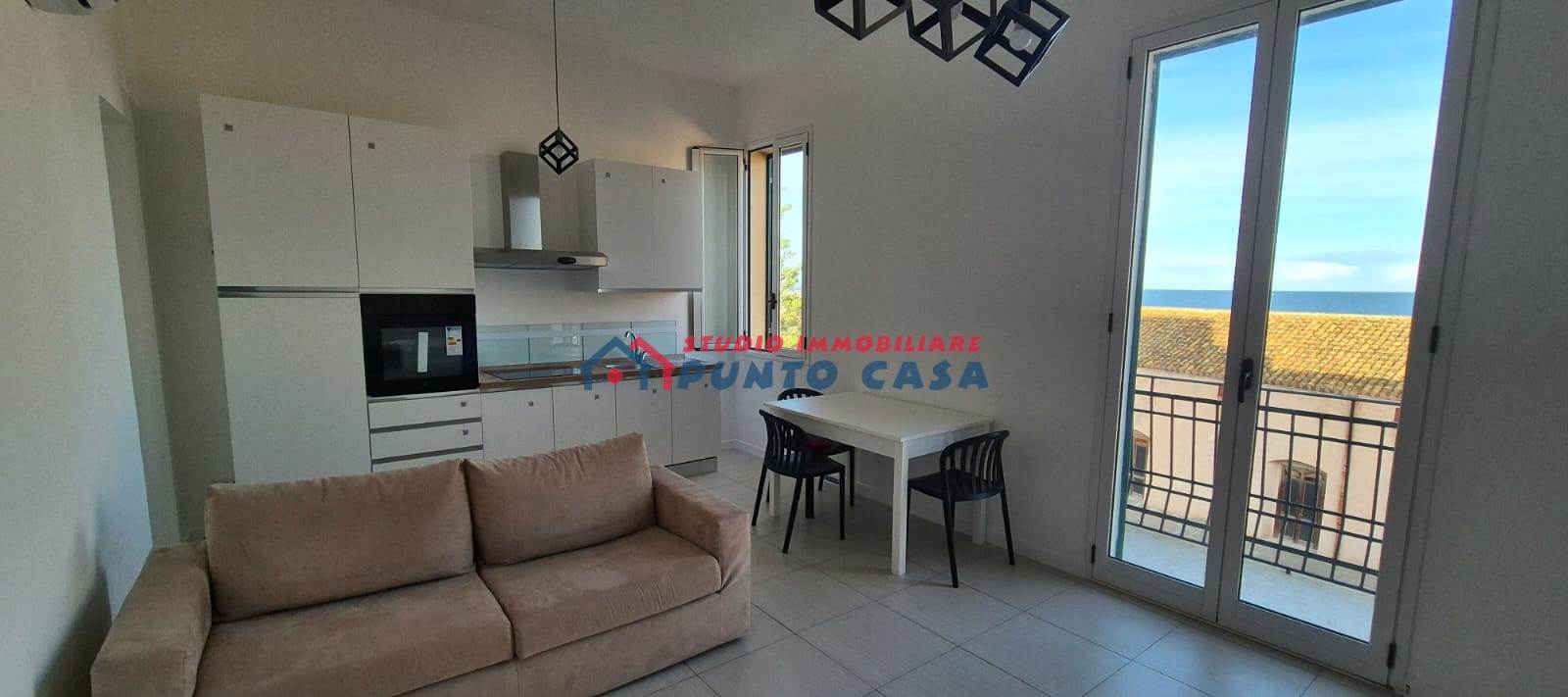 ENG: We offer for rent a beautiful three-room apartment in very good conditions. On the fifth floor with lift, in the historical centre of Trapani, living room with kitchen, two master bedrooms, two bathrooms. Totally renovated, fully furnished, wonderful sea view. Air conditioning system.