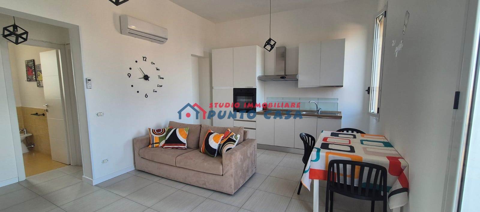 Completa di tutti gli elettrodomestici, con piano a induzione, arredata con parete attrezzata e divanetto;