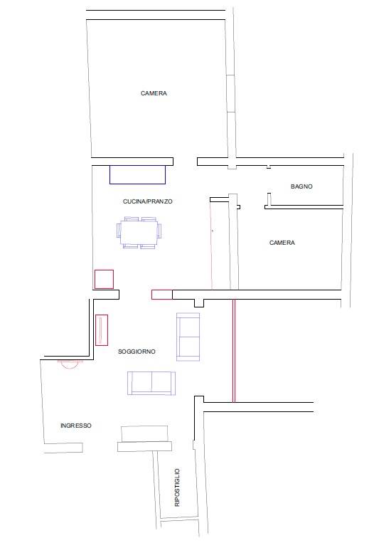 - cucina abitabile completa di elettrodomestici, tavolo, n. 4 sedie, credenza;