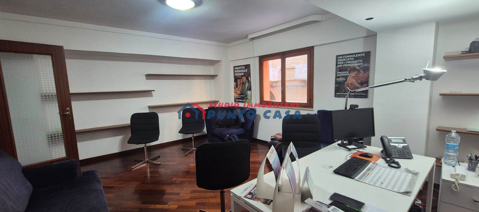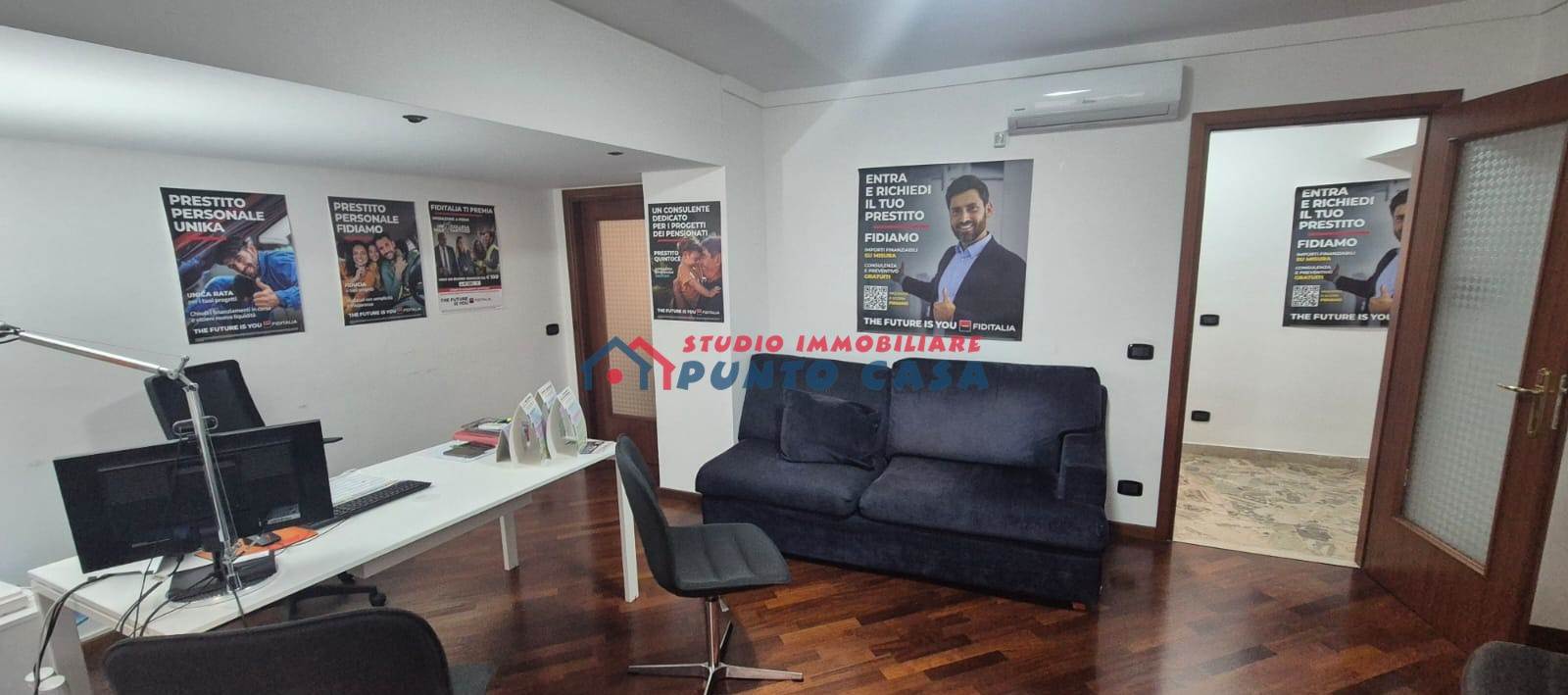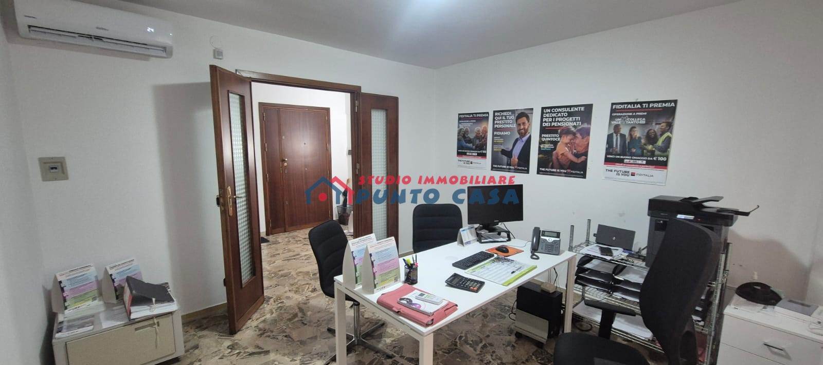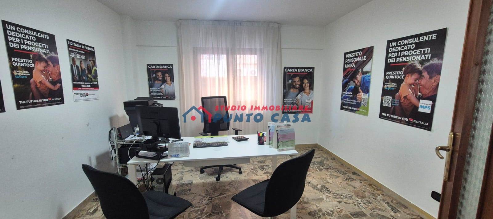L’ufficio, che si presenta in buone condizioni, si estende su una superficie di circa 60 mq e risulta suddiviso in 3 luminosi vani + w.c. e ripostiglio, con un largo ingresso–corridoio che, all’esigenza, funge da sala d’attesa.