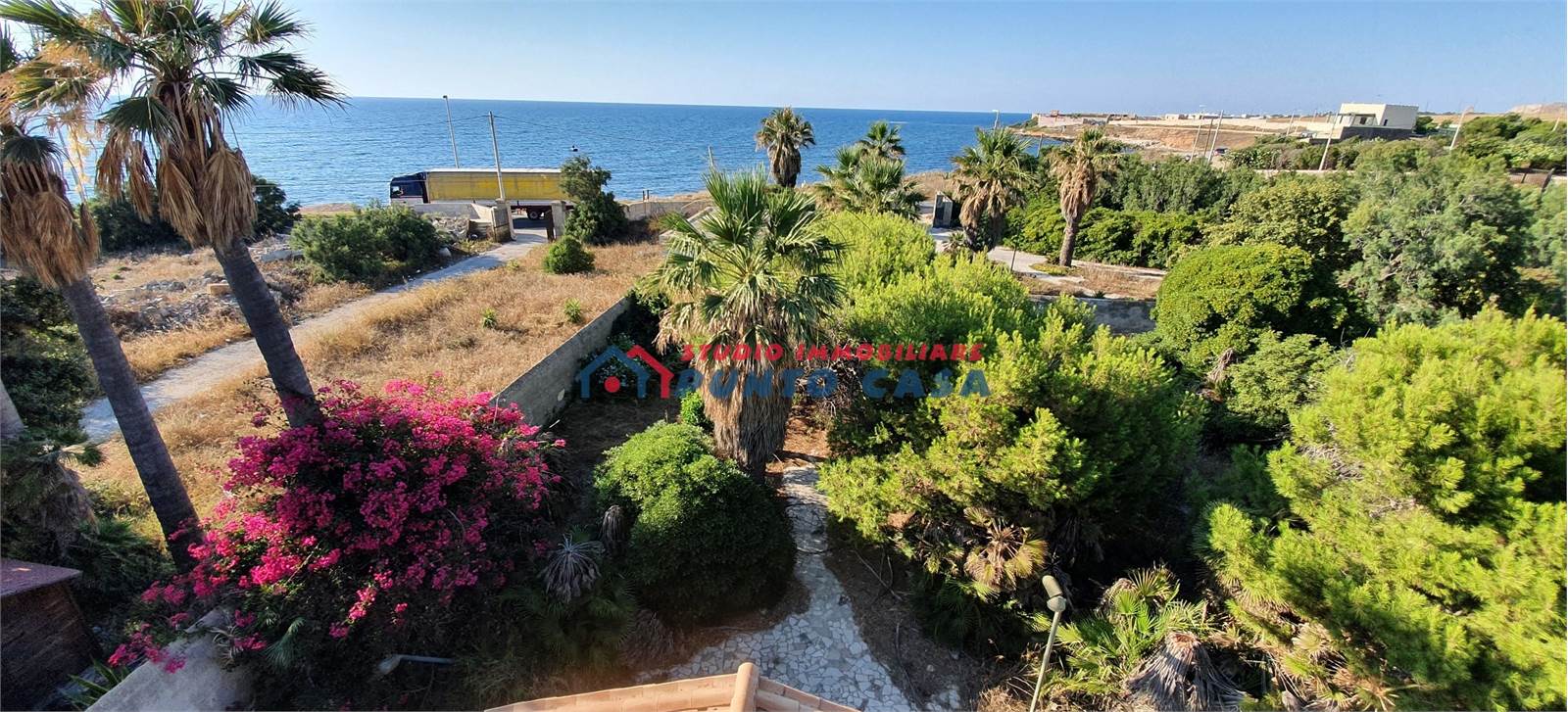 Sullo splendido scenario del litorale che conduce da Trapani verso le rinomate località di Pizzolungo e San Vito Lo Capo, e più precisamente in contrada San Cusumano, lo Studio Immobiliare Punto Casa di Giacomo Nicotra propone in vendita una splendida tenuta che insiste su un ampio lotto di terreno esteso per circa quattro ettari.