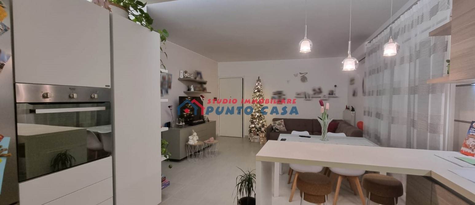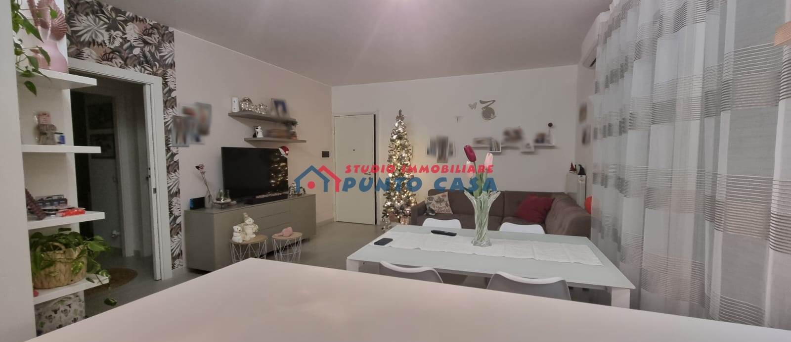 - ingresso su ampio e luminoso soggiorno con cucina a vista e n. due portefinestre conducenti a due balconi diversi;