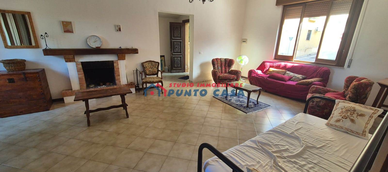 - ampio e luminoso soggiorno con camino e portafinestra conducente a veranda vista mare;