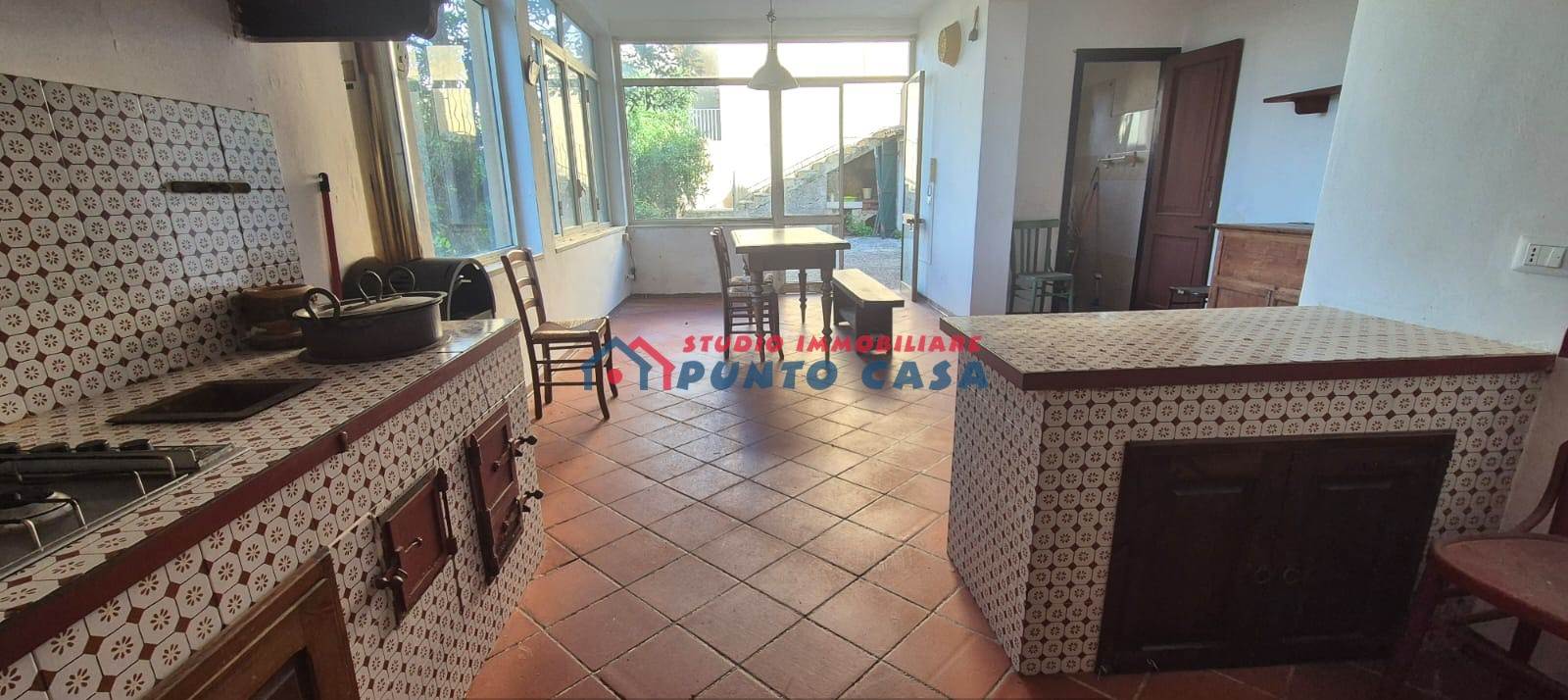 - ampia cucina abitabile con piano cottura in muratura e predisposizione per stufa a legna, con accesso a giardino e lunghe vetrate;